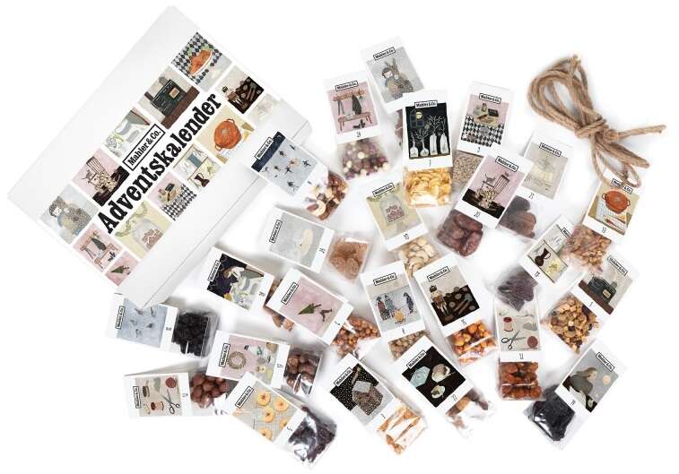 Bio-Adventskalender, gefüllt mit feinen Früchten und Nüssen